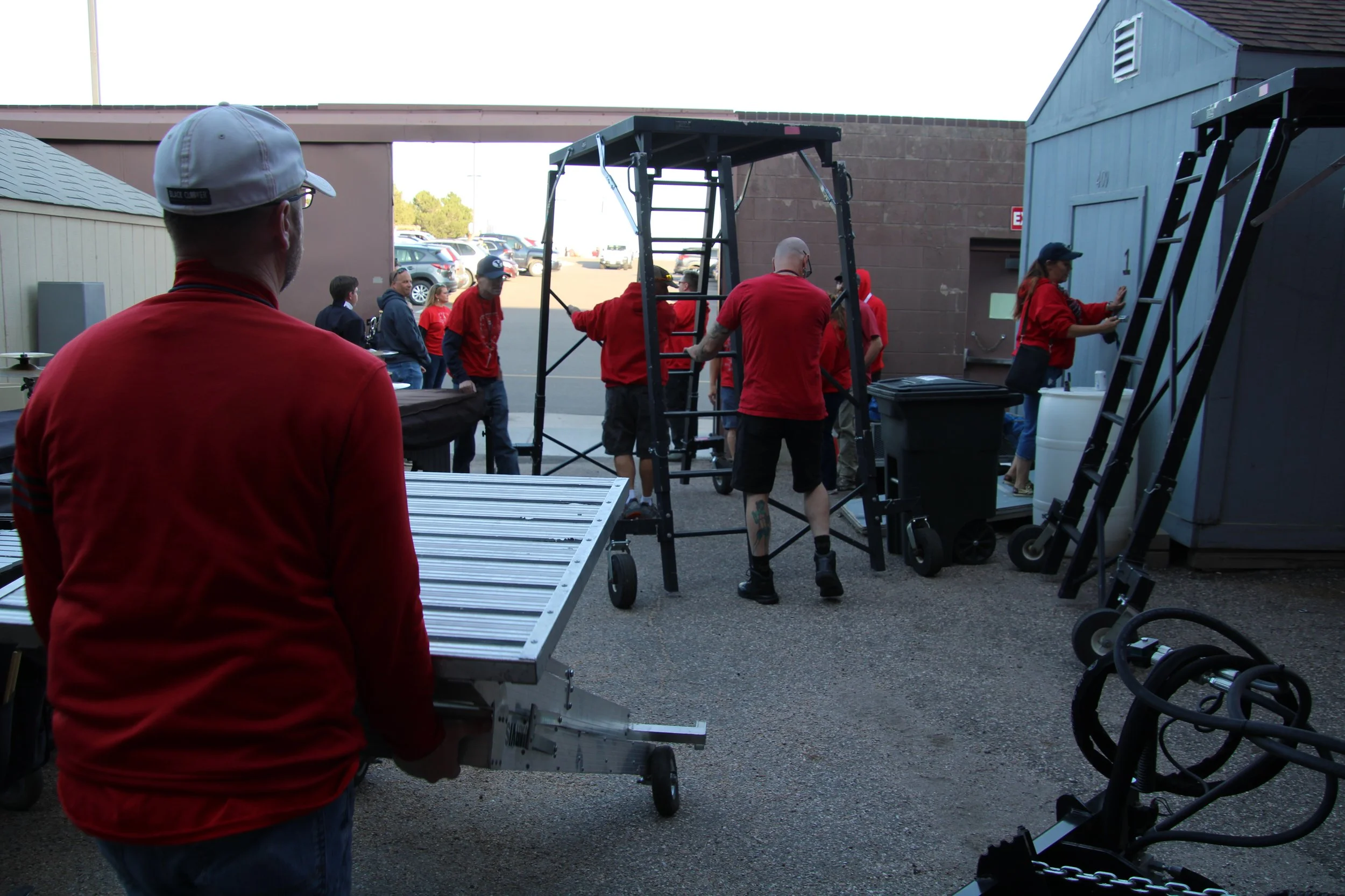 Transport food to and from competitions, set up awnings, tarps and serving area